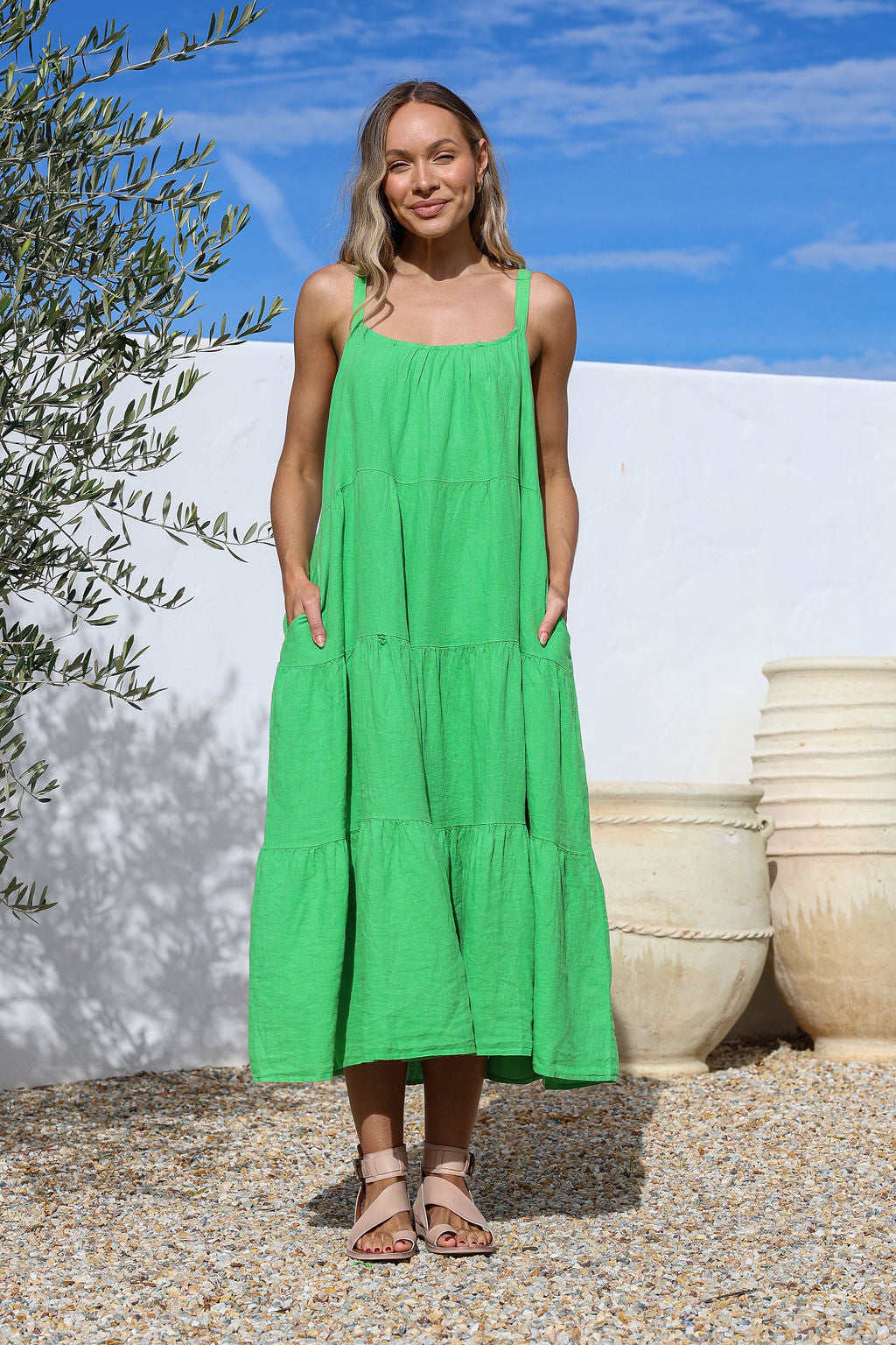 Strato Linen Dress - Verde